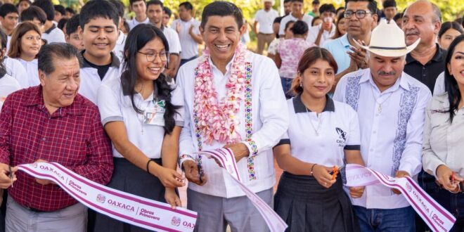 La diputada por Oaxaca de Juárez, Haydeé Reyes, y el gobernador Salomón Jara Cruz encabezaron la inauguración del techado de la cancha de usos múltiples y la rehabilitación del área de fútbol en el multideportivo “Azucena”
