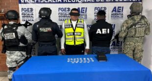 Durante la revisión legal, los agentes de seguridad aseguraron varias bolsas que contenían las drogas conocidas como cristal y marihuana, mismas que presuntamente eran comercializadas en la zona, algunas de ellas con la leyenda “New Veracruz”. Por estos hechos, F.G.R. fue detenido y puesto a disposición de la autoridad competente, a fin de que se determine su situación jurídica.