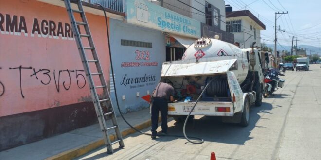 Oaxaca de Juárez, Oax., 22 de abril de 2026.- La Policía Vial Estatal aseguró una pipa abastecida con gas LP que circulaba sin la documentación correspondiente que acreditara la legalidad de su traslado y comercialización, sobre la calle Felipe Carrillo Puerto, a la altura del mercado de la colonia Reforma Agraria, en Santa Cruz Xoxocotlán.