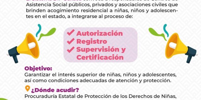 En atención a las medidas de protección especial emitidas por la Procuraduría Federal de Protección de Niñas, Niños y Adolescentes (PFPNNA), se desarrolla una convocatoria pública permanente dirigida a todos los responsables de CAS en funcionamiento en el estado de Oaxaca.