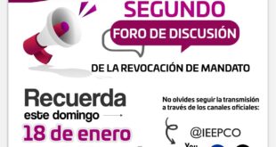 El Instituto Estatal Electoral y de Participación Ciudadana de Oaxaca (IEEPCO) realizará este domingo 18 de enero, a las 18:00 horas, a través de sus redes sociales institucionales, el Segundo Foro de Discusión sobre la Revocación de Mandato, como parte de las acciones para fomentar la participación ciudadana y el diálogo en torno a este ejercicio de democracia participativa. En este ...
